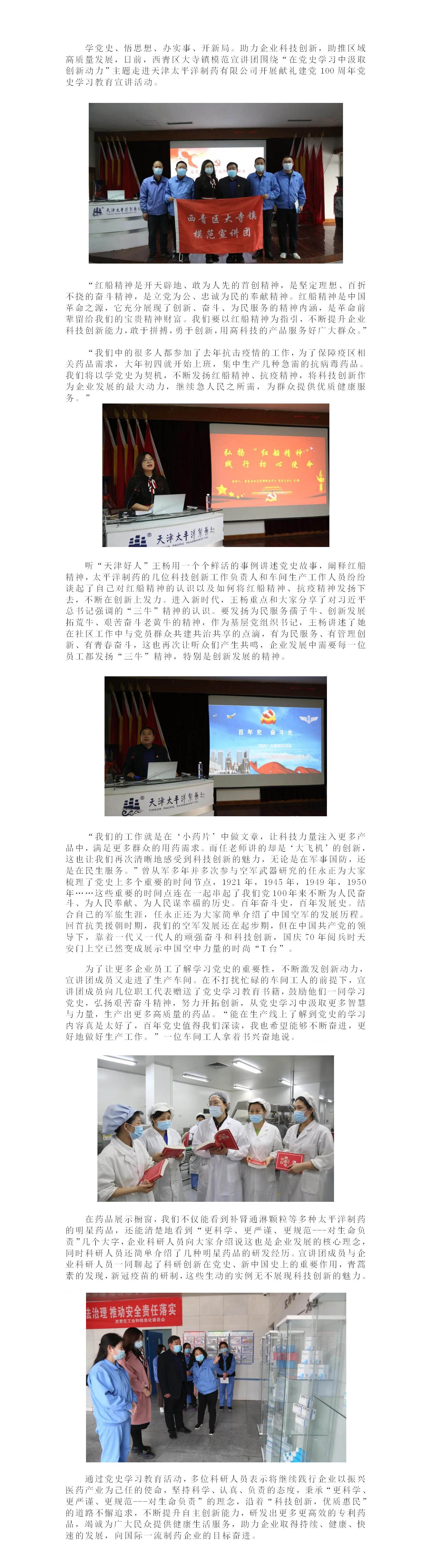 在黨史學習中汲取創新動力--西青區大寺鎮模范宣講團走進天津太平洋制藥有限公司