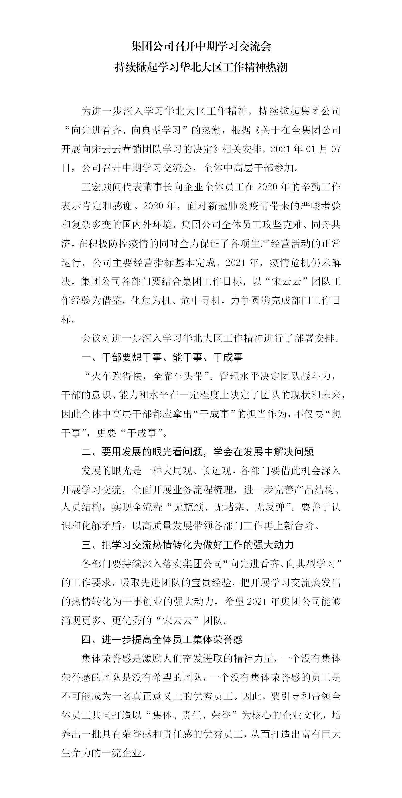 集團公司召開中期學習交流會 持續掀起學習華北大區工作精神熱潮