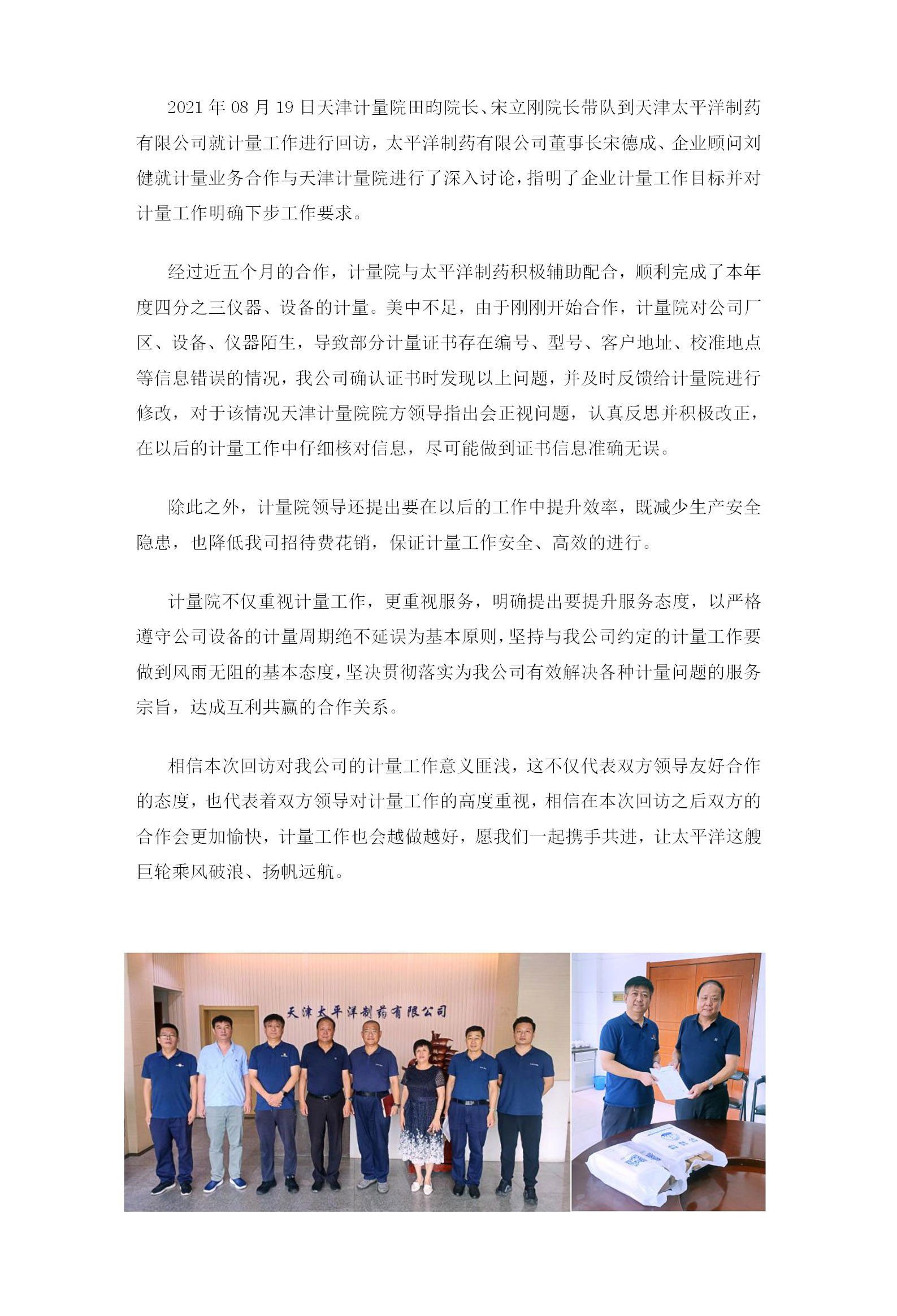 院企聯合、深度合作—— 天津計量院與太平洋制藥回顧合作歷程、展望合作前景